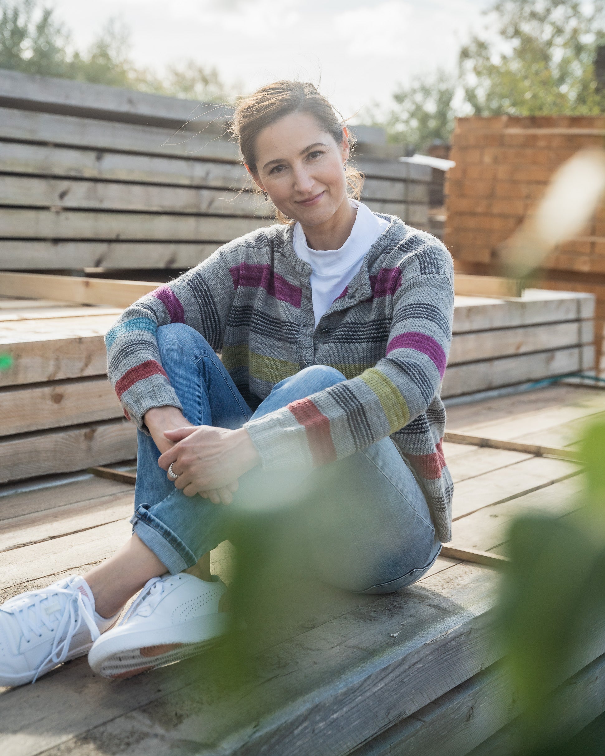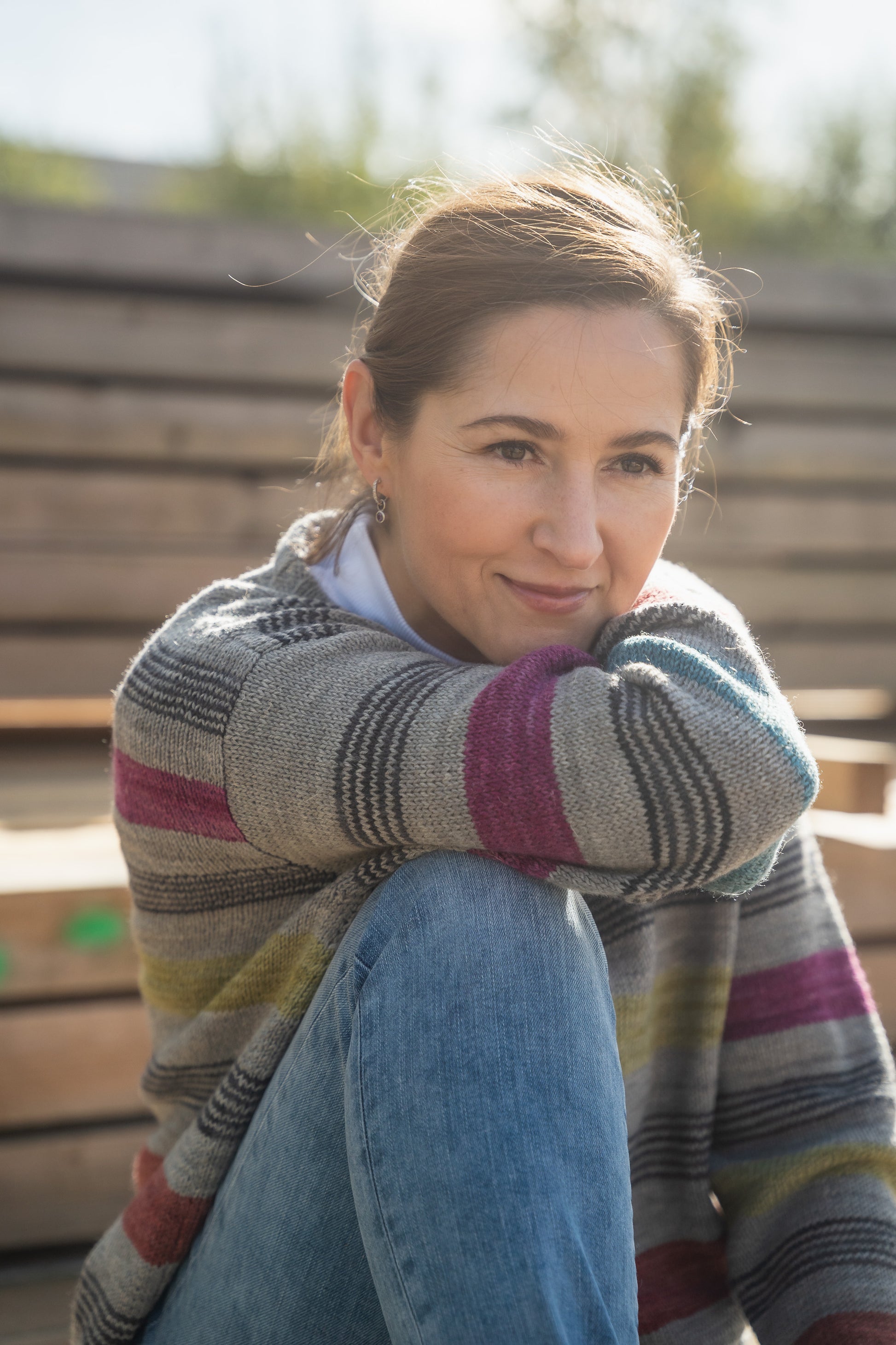 Light, weil diese Jacke nun einfädig mit Nadeln 3,0 – 3,5 mm gearbeitet wird. All meine KundInnen, die bevorzugt mit kleiner Nadel stricken, werden sich darüber freuen. Das Material besteht aus 90% Wolle mit 10% Hanf.